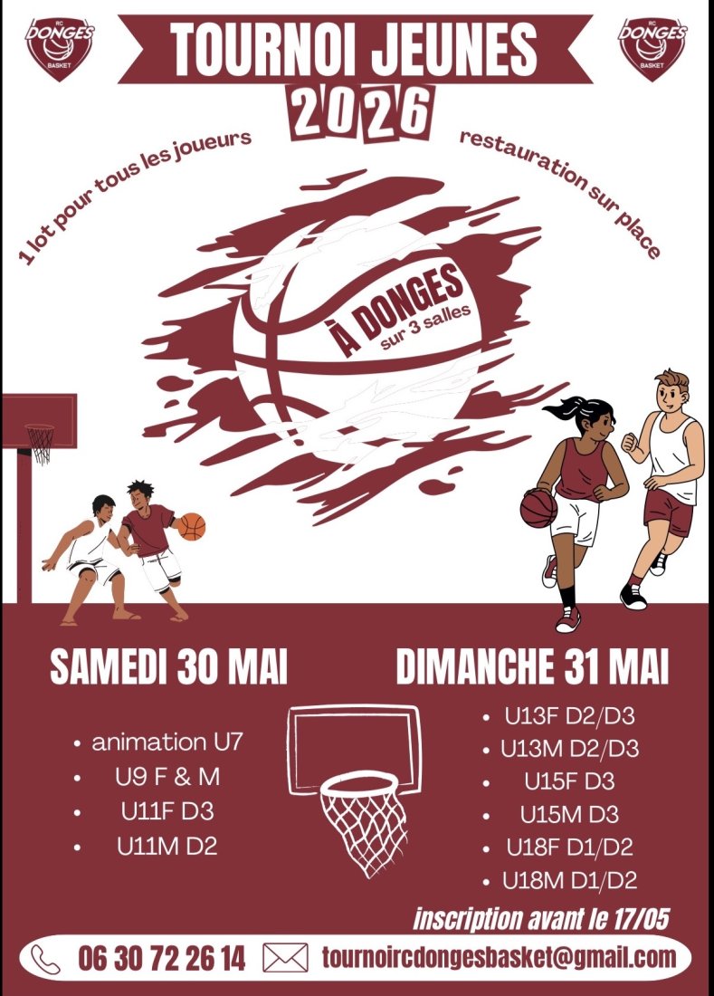 Le RCD Basket est ravi de vous donner rendez-vous pour son grand tournoi de fin de saison, le week-end des 30 et 31 mai !